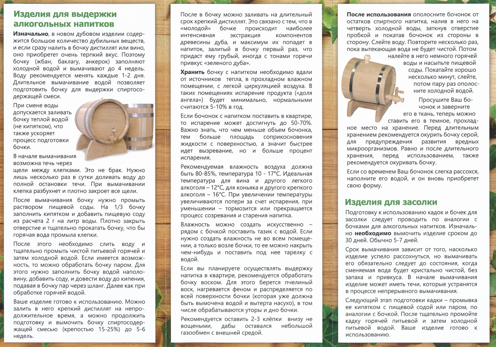 Данная информация затрагивает важные моменты подготовки дубовых бочек (кадок) и использования дубовых бочек (кадок) для выдержки напитков и хранения продуктов.